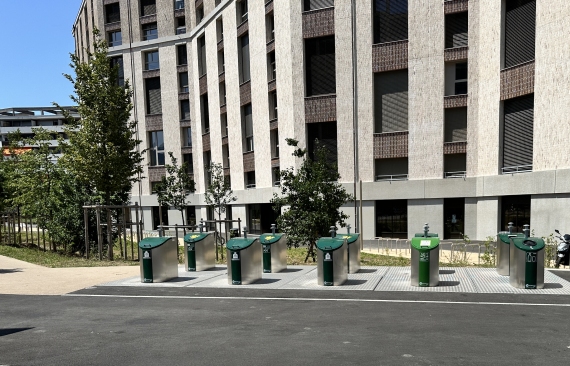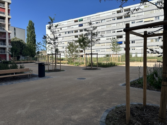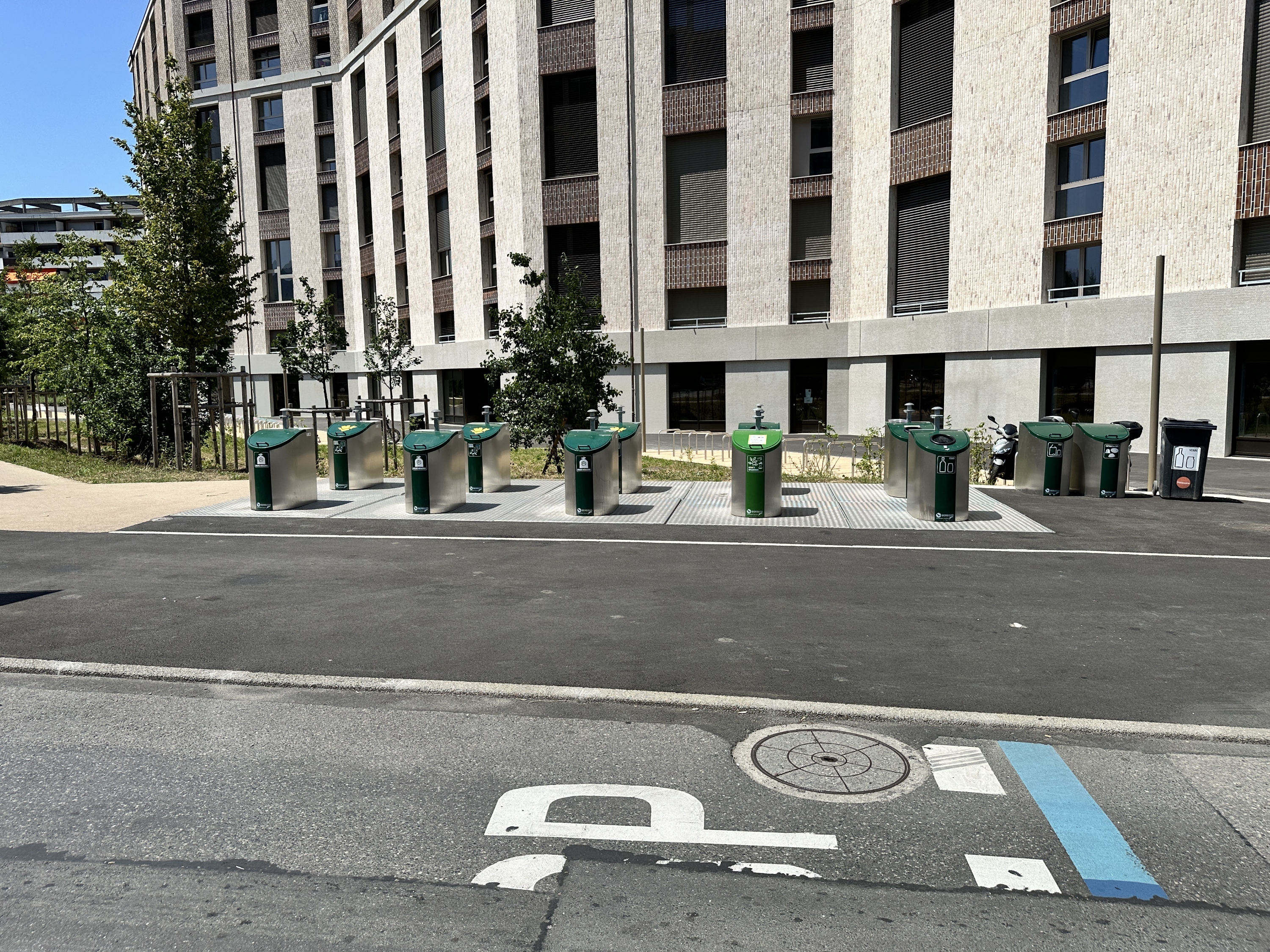 Nous avons mis en place de mobilier de type centre de tri Ecopoint, poubelles, potelets, arceaux vélo, bancs et aire de jeux.