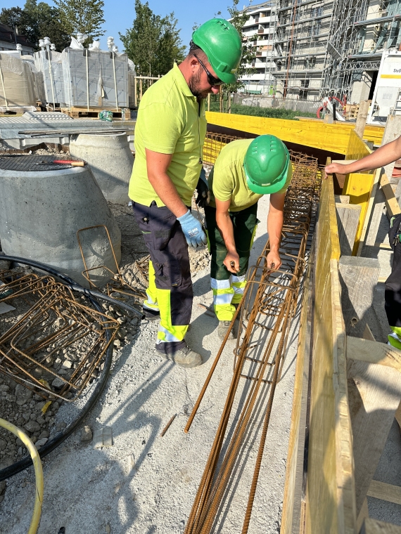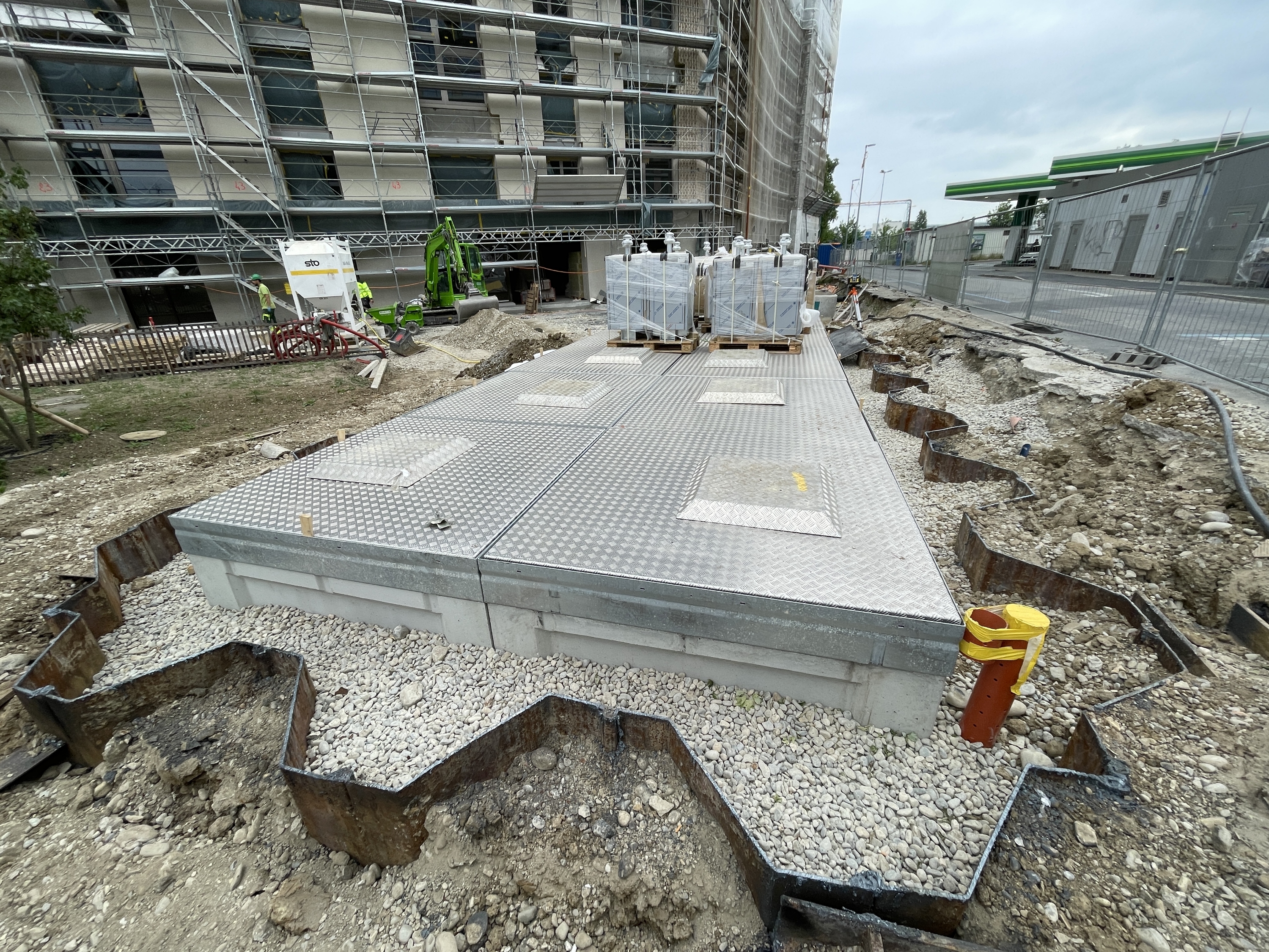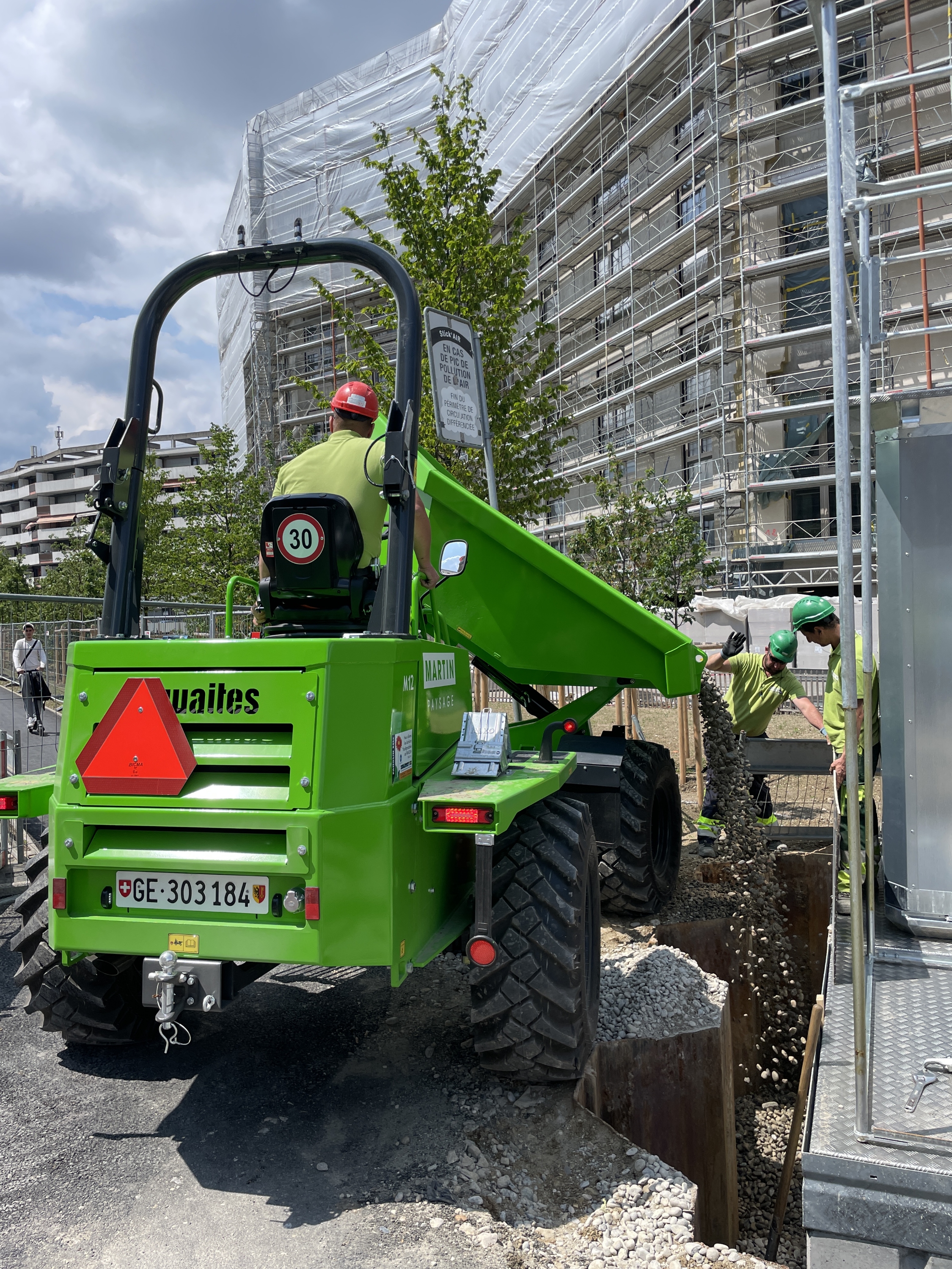 Les travaux ont débuté par la démolition d'éléments en béton, puis près de 3'500m³ de terrassement et modulation de terrain.  Nous avons mis en place 500m³ de verre expansé, solide et légers, utilisé pour remblayer lorsqu'un sous-sol a une contrainte de charge trop faible. Nous avons enfin remis en place 3000m3 de terre végétale.