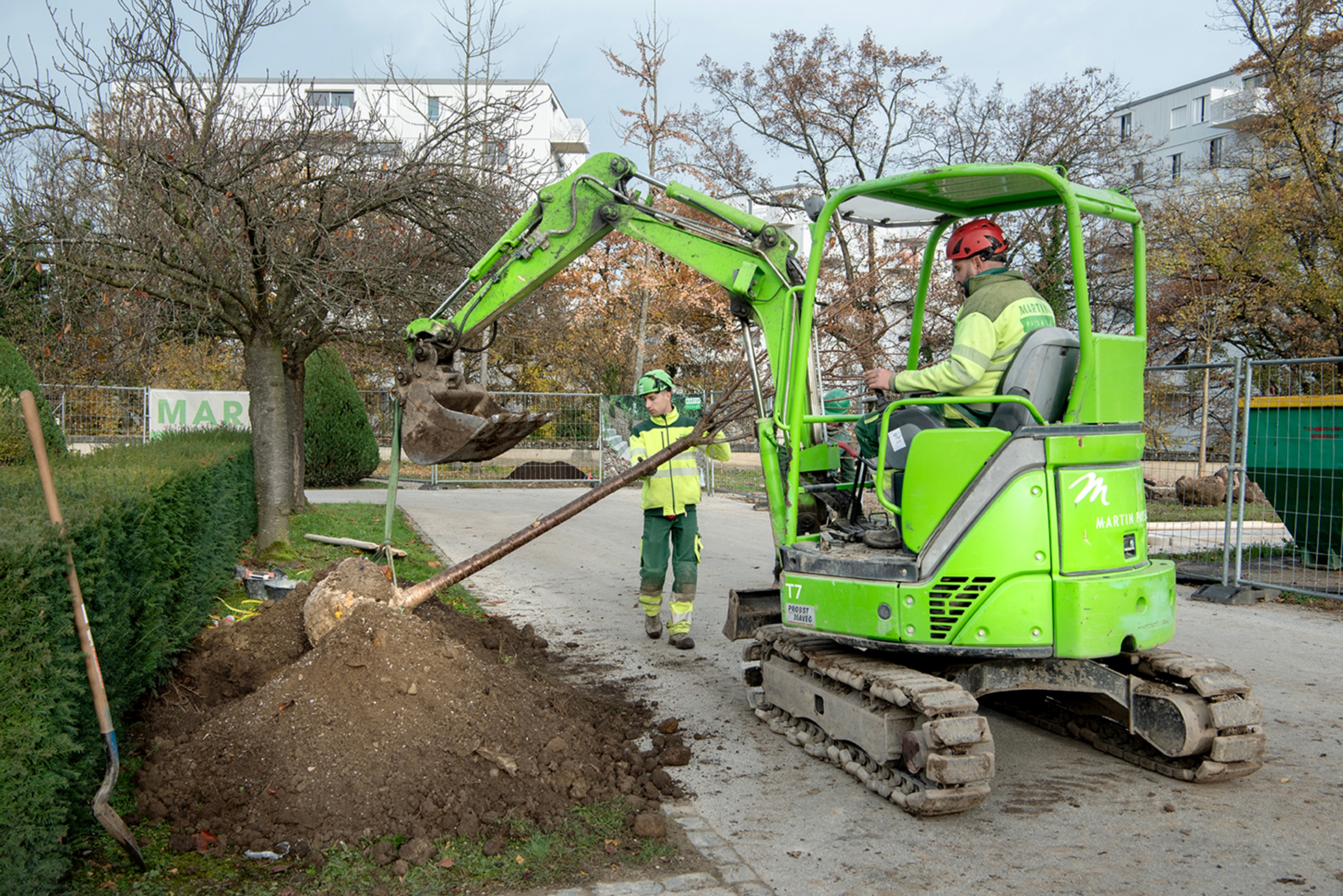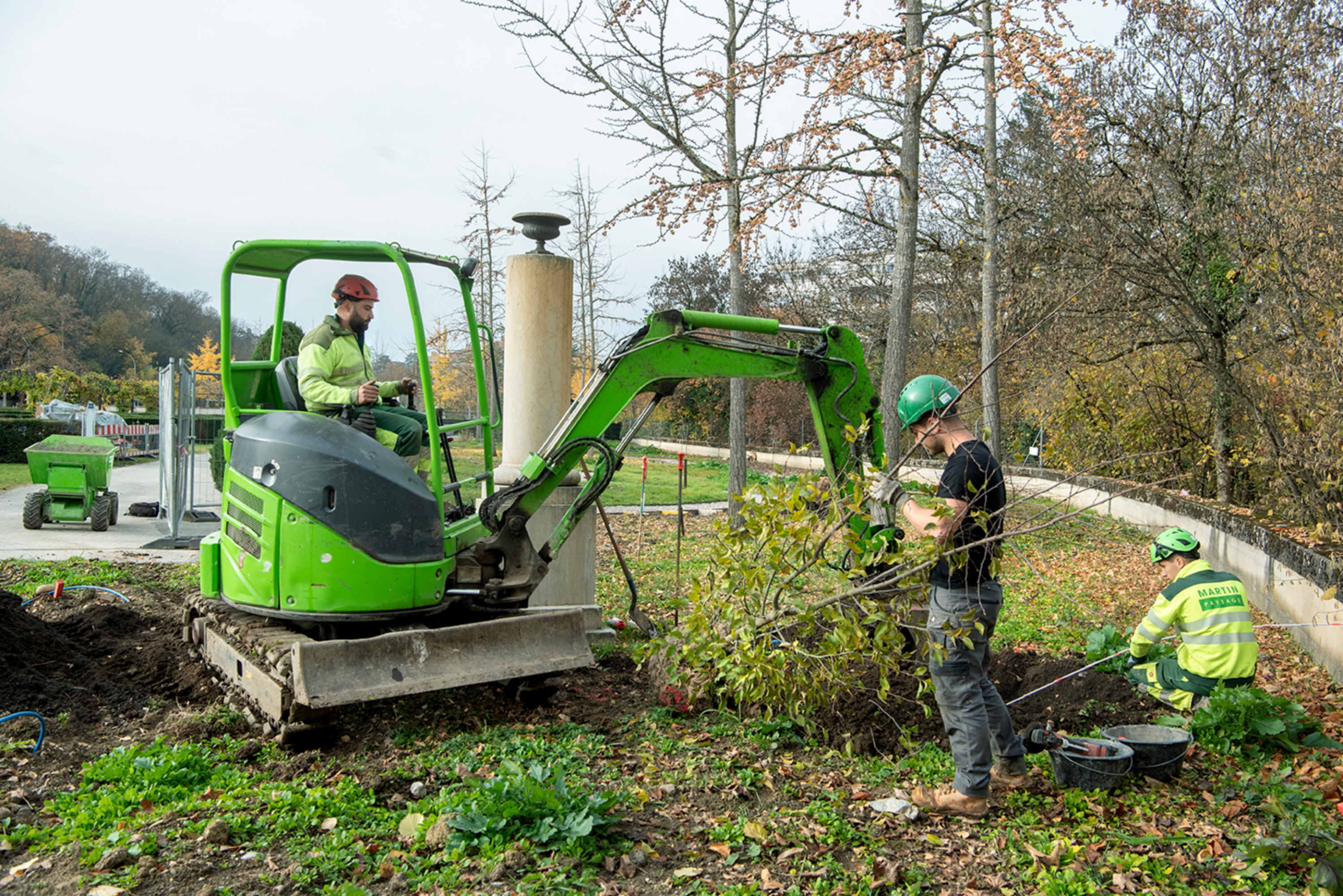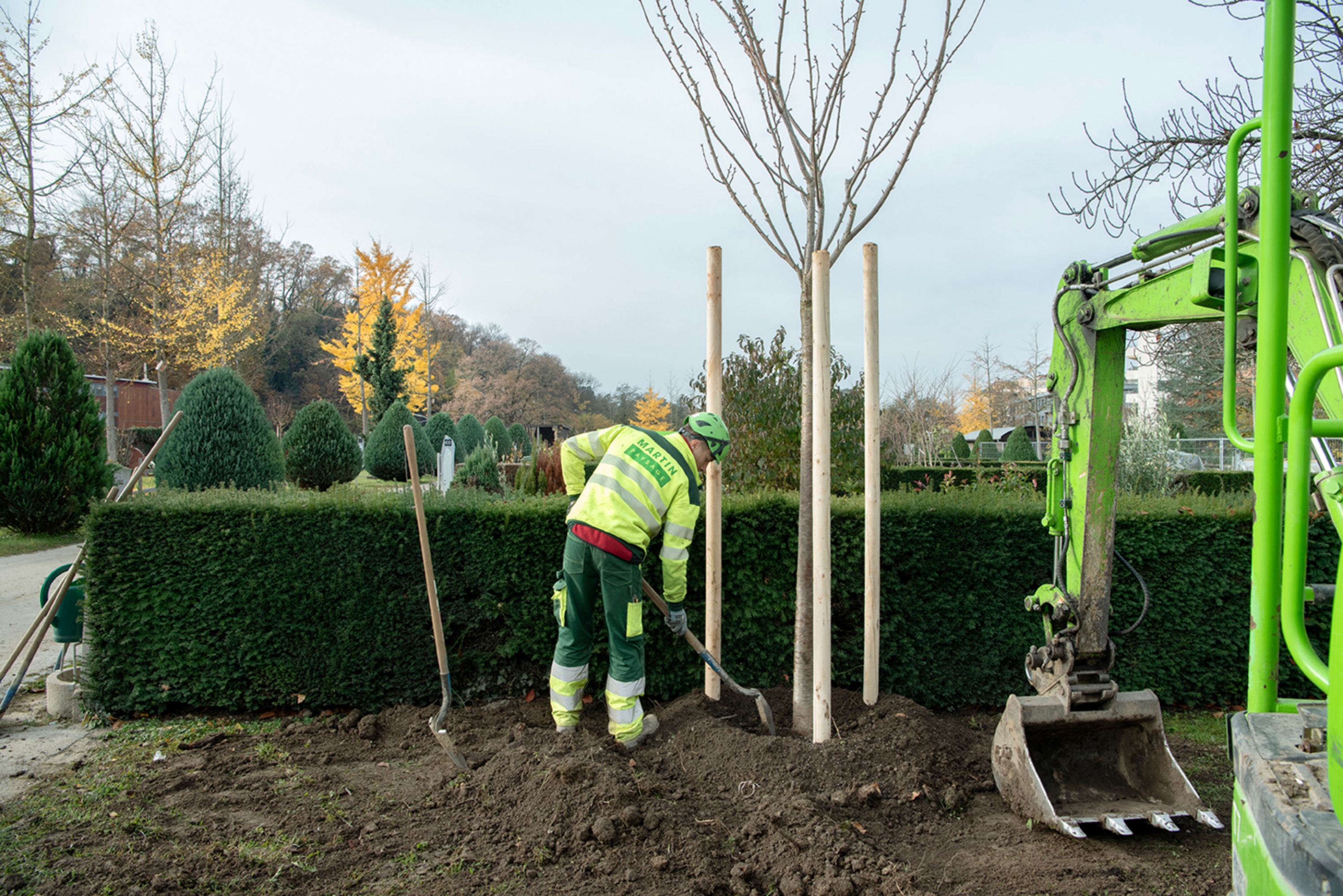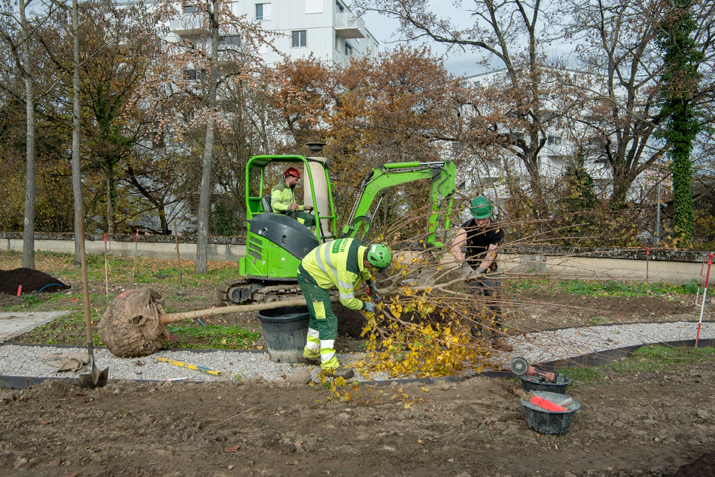 Ce cimetière emblématique de Carouge était peu végétalisé. Nous avons remplacé une grande partie des surfaces minérales par du gravier engazonné afin de maintenir l'accès au sépultures en tout temps. Des bordures métalliques séparent proprement les matériaux. L'importante quantité d'arbres planté accompagné de massif de vivaces transforme cet aménagement en ilot de fraicheur en été.