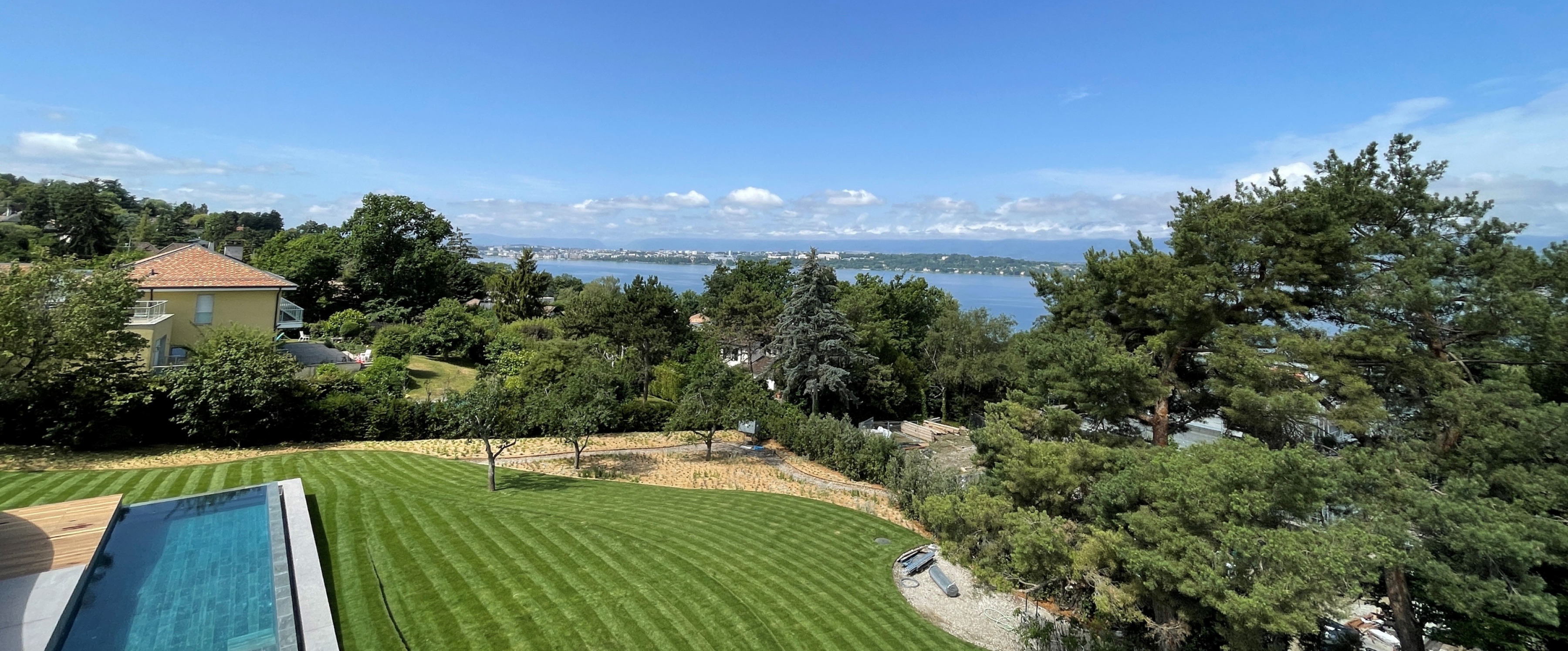 Au coeur de la commune de Cologny, une splendide villa contemporaine a été édifiée sur une parcelle d'environ 3'700 m2.